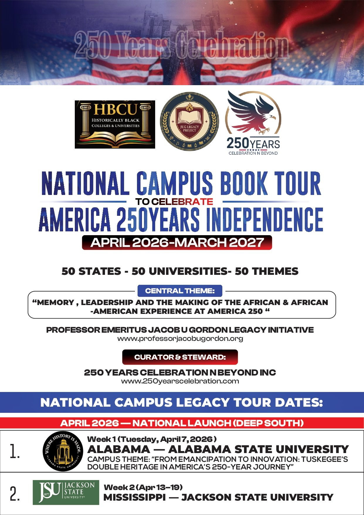 This page documents the ongoing national campus engagement, media appearances, and official announcements connected to Professor Jacob U. Gordon’s Legacy Initiative and the USA 250 Years Celebration. It reflects a living intellectual journey unfolding across American universities.